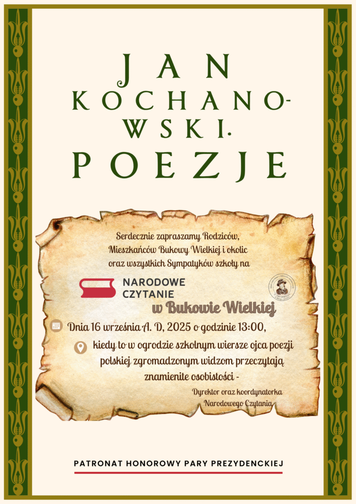 Dzień Edukacji Narodowej 2025 21.10.202521.10.20258XXV Dzień Papieski. „Święty Jan Paweł II. Prorok nadziei” 13.10.202520.10.20257Narodowe Czytanie 2025 17.09.202518.09.20259