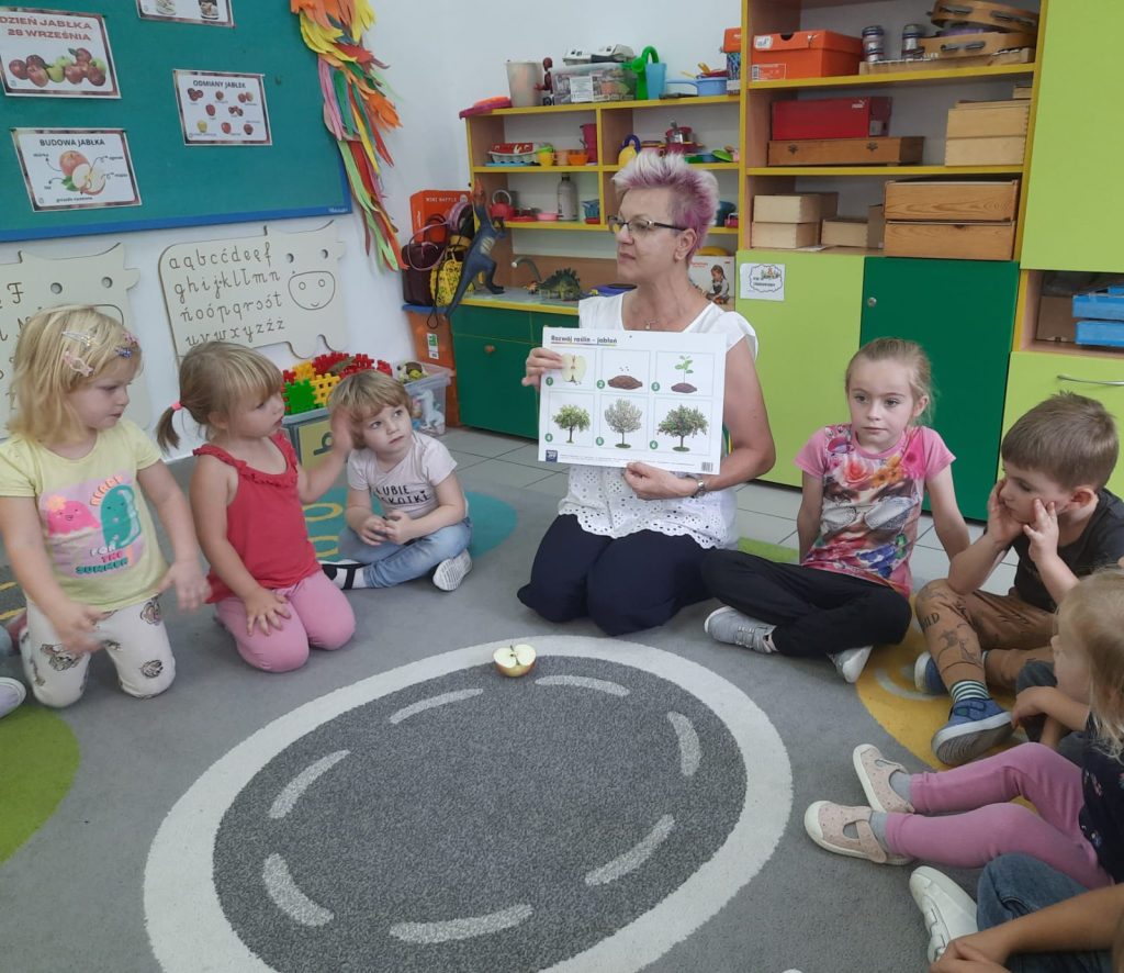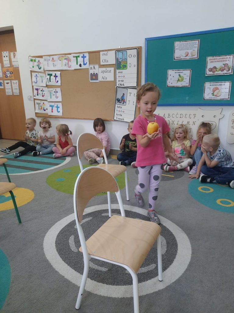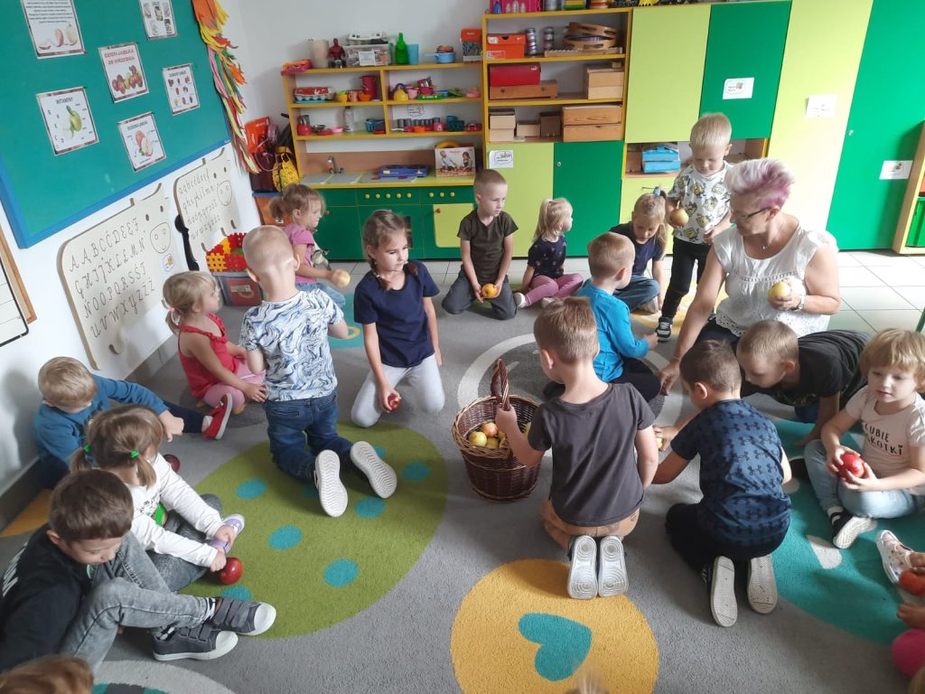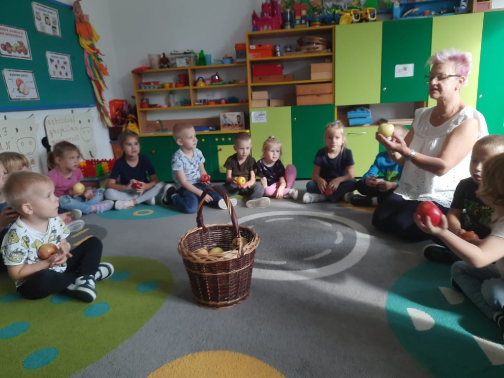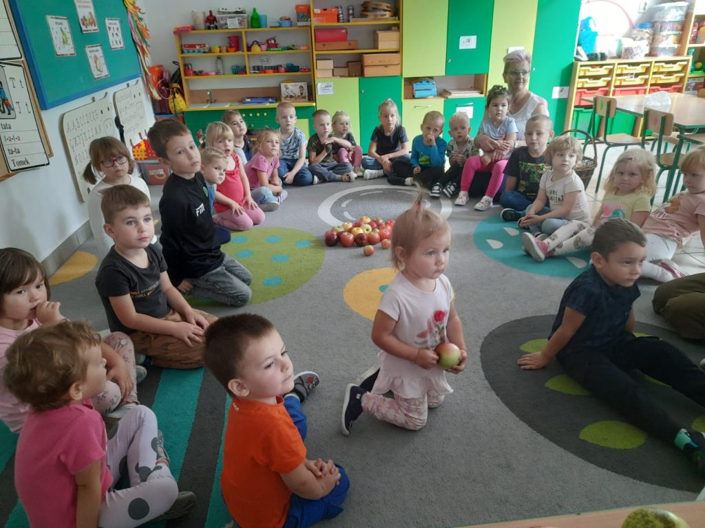 27 września obchodziliśmy w oddziałach przedszkolnych Dzień Jabłka. Celem zajęć i wspólnej zabawy była integracja wszystkich dzieci oraz zachęcanie ich do spożywania owoców, a w szczególności jabłek. Dzieci wszechstronnie poszerzały wiedzę o jabłku. Poznawały różne odmiany tych owoców, rozpoznawały kształt, zapach, kolor, smak. Zdobywały wiadomości na temat potraw i przetworów z jabłek. Tego dnia dzidzi śpiewały wspólne piosenki o jabłuszku, zatańczyły również „jabłkowy” taniec. To był bardzo ciekawy dzień w przedszkolu.