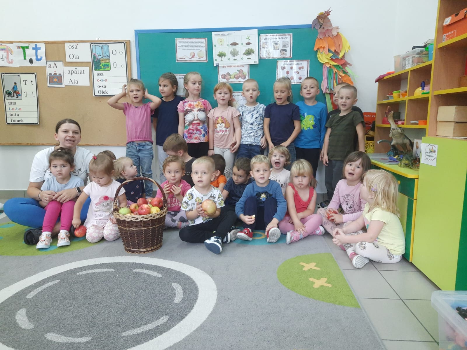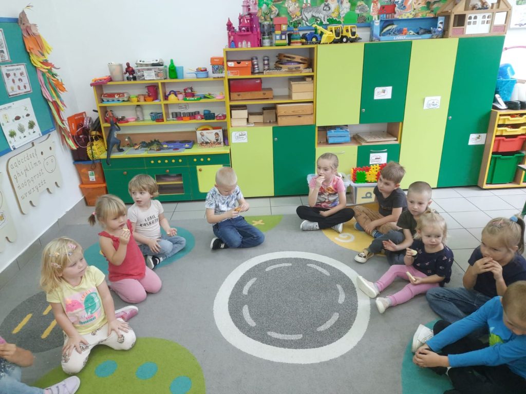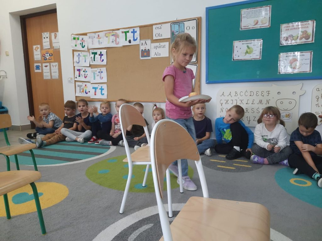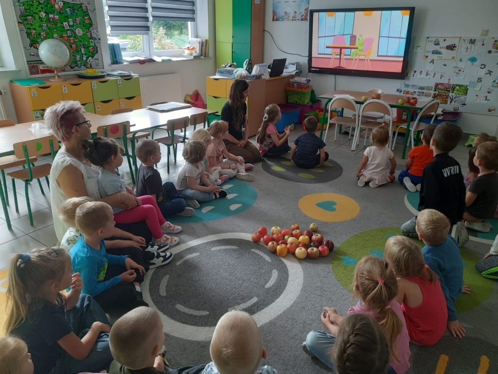 27 września obchodziliśmy w oddziałach przedszkolnych Dzień Jabłka. Celem zajęć i wspólnej zabawy była integracja wszystkich dzieci oraz zachęcanie ich do spożywania owoców, a w szczególności jabłek. Dzieci wszechstronnie poszerzały wiedzę o jabłku. Poznawały różne odmiany tych owoców, rozpoznawały kształt, zapach, kolor, smak. Zdobywały wiadomości na temat potraw i przetworów z jabłek. Tego dnia dzidzi śpiewały wspólne piosenki o jabłuszku, zatańczyły również „jabłkowy” taniec. To był bardzo ciekawy dzień w przedszkolu.