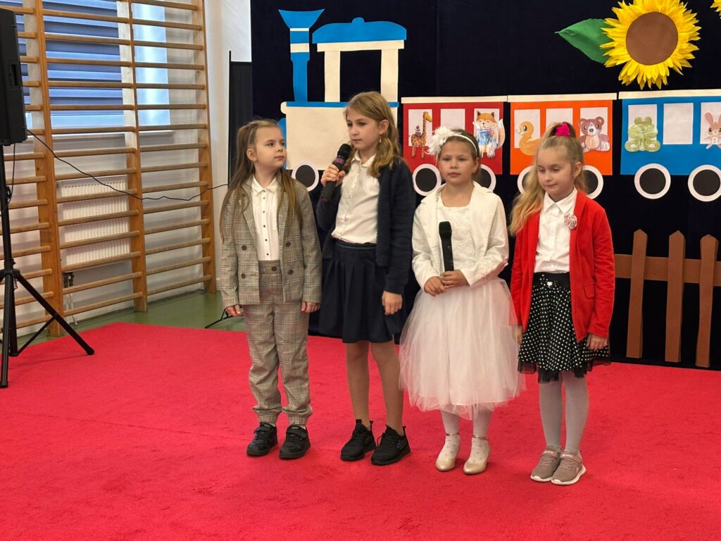 Z okazji Dnia Edukacji Narodowej uczniowie uczniowie starszych klas zaprezentowali zabawny program artystyczny, pełen piosenek, wierszy i życzeń dla nauczycieli. Nie zabrakło uśmiechu, wdzięczności i własnoręcznie przygotowanych upominków – wszystko po to, by wyrazić szacunek i uznanie dla wszystkich pracowników szkoły.